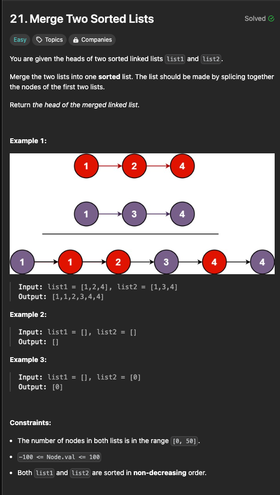 def mergeTwoLists(self, list1: Optional[ListNode], list2: Optional[ListNode]) -> Optional[ListNode]: