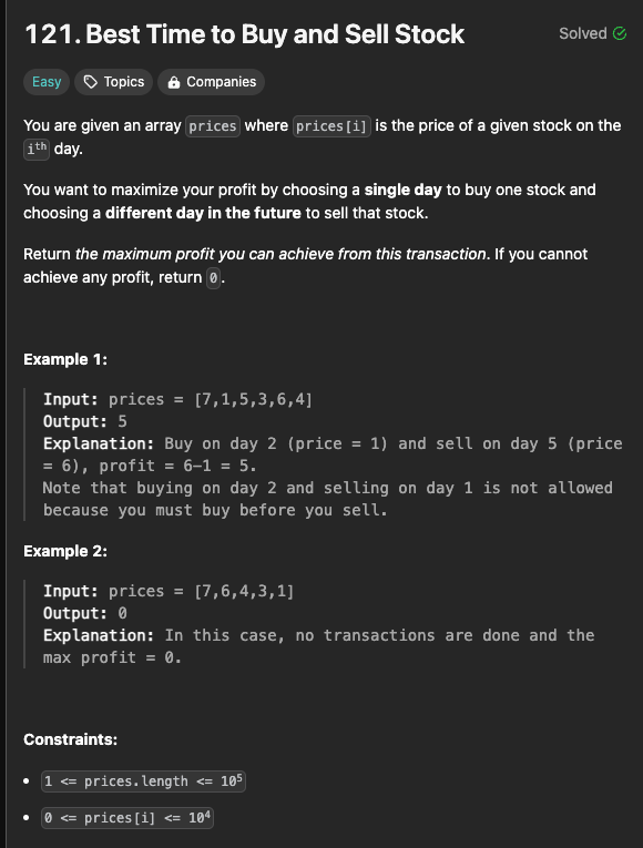 (간단한 코드)리트코드 121. Best Time to Buy and Sell Stock