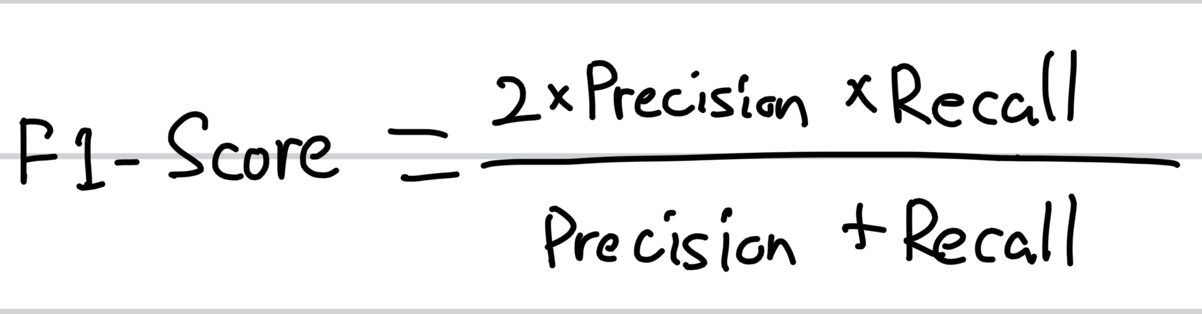 이 두녀석을 조화롭게 바라보자, 하는 것이 바로 f1-score이다. 둘다 비슷하게 중요한 경우, 즉 완만하게 나쁘지 않은 경우를 구하고 싶을때 F1-Score을 사용한다는 것이다.